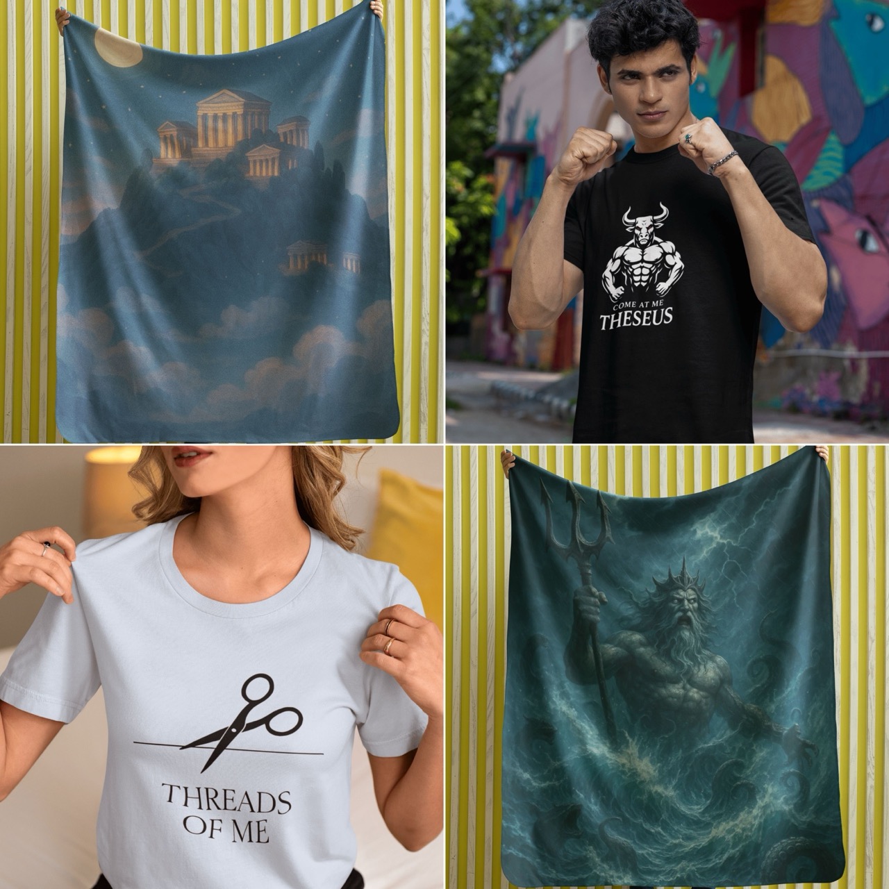 That symbolism translates easily into everyday imagery. Labyrinth patterns, bull motifs, and thread designs appear often in modern design because they communicate struggle, complexity, and escape without needing explanation.